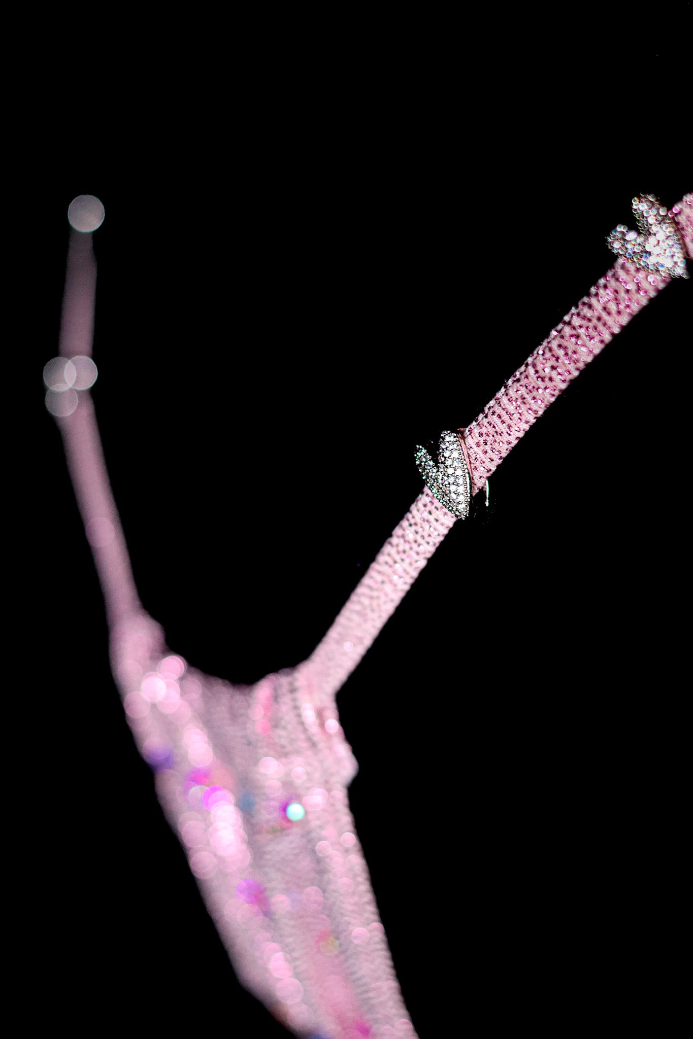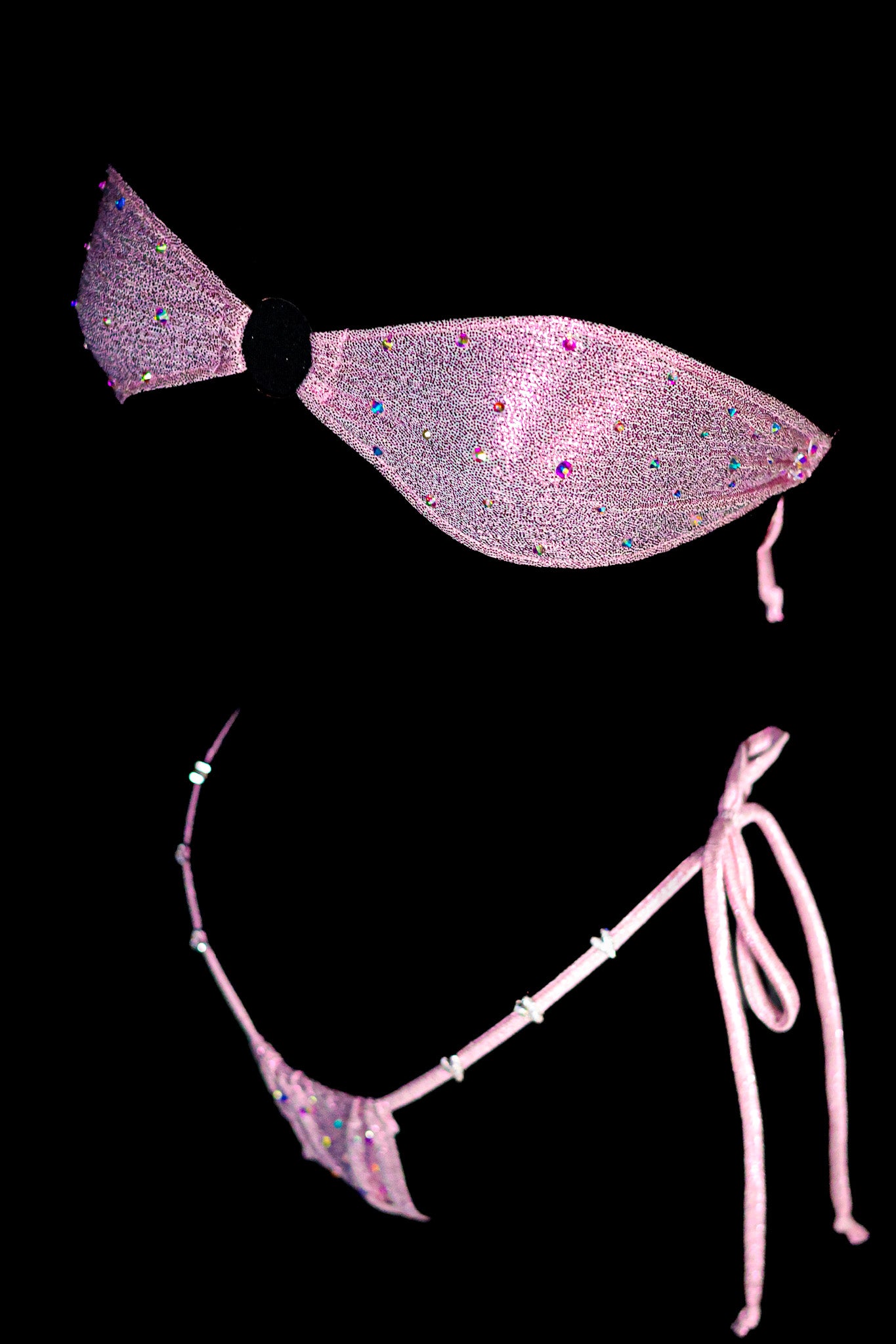 A sleek tube top paired with a micro side-tie panty, finished with silver heart details that catch the light with every move.
